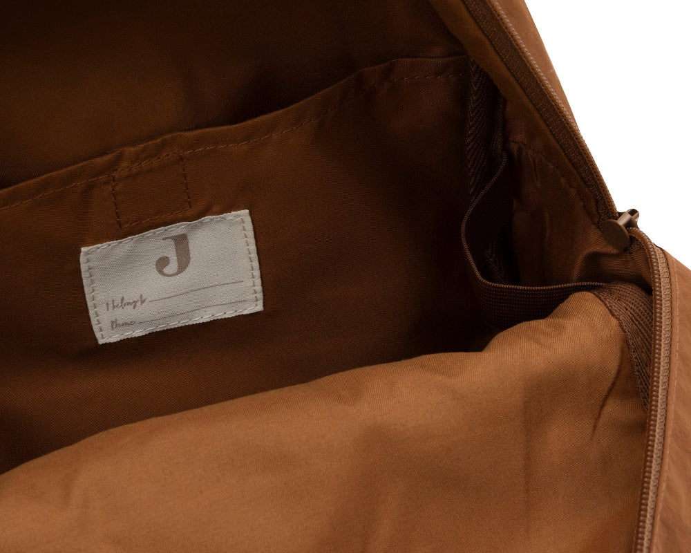 Aan de binnenkant van de tas zit een naamlabel, waarmee je kunt voorkomen dat iemand anders hem per ongeluk meeneemt. Ook zit er aan de binnenkant een schattige stippenprint, hoe leuk!