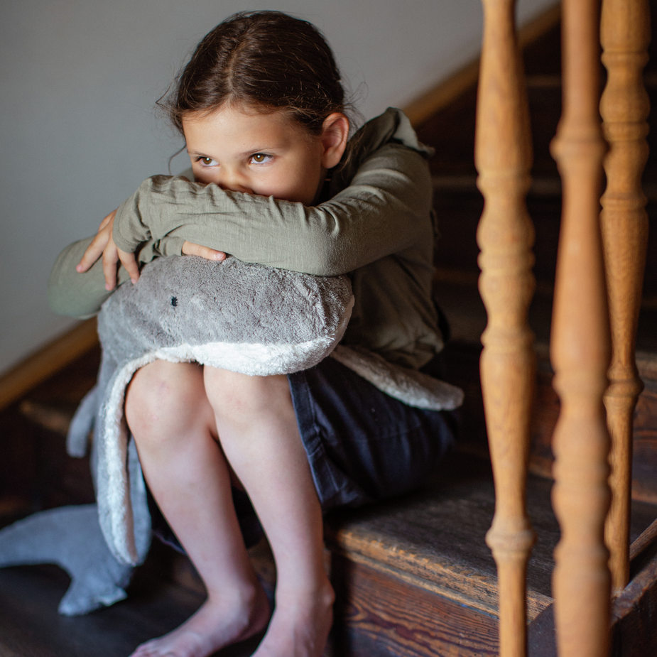 Grote warmteknuffel haai van Senger Naturwelt, een zachte knuffel voor jouw dreumes of kleuter of jezelf veilig om te gebruiken vanaf 2 maanden, veilig om mee te knuffelen, te slapen, te spelen en zelfs om in de mond te steken.