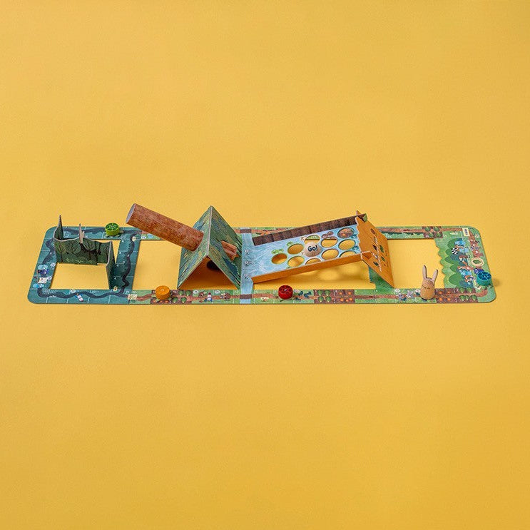 LONDJI bordspel voor kinderen vanaf 5 jaar. Met Ready, steady, go! is het doel om gezamenlijk de finish te bereiken - niet individueel. Met dit coöperatieve spel leren kinderen met elkaar samen te werken zonder dat er een winnaar of verliezer is. Daarom is dit spel zeer geschikt voor kindjes die moeilijk tegen hun verlies kunnen. Ready, steady, go! bevordert teamwork, strategisch denken en stimuleert de besluitvorming.